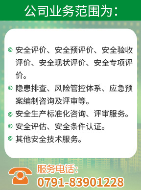 石油加工業,化學原料、化學品及醫藥制造業;其他業務范圍,如新能源制造業、電力、熱力、燃氣及水處理業、供應業、倉儲業、食品制造業、電子產品制造業、金屬制品業、非金屬礦物制品業、機械設備制造業、電器制造業、輕工業、紡織業、煙草加工制造業、林產化學產品制造業;并為政府提供技術支撐,為園區提供隱患排查等。被江西省應急管理廳認定為安全生產標準化咨詢與評審資格的專業技術服務機構。
